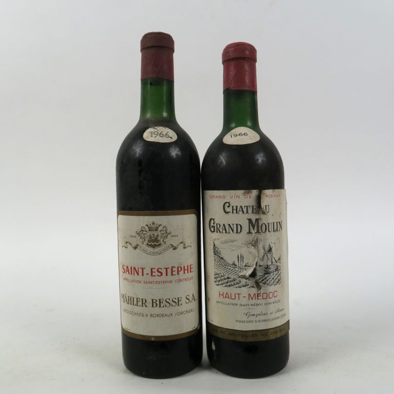 2 BOUTEILLES: 1 CHÂTEAU GRAND MOULIN HAUT MEDOC 1966 HEP/ETA - 1 SAINT ESTEPHE MÄHLER-BESSE 1966 BG/BS