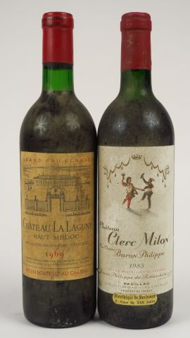 2 BOUTEILLES : 1 CHÂTEAU LA LAGUNE GCC HAUT MEDOC 1969 BG - 1 CHÂTEAU CLERC MILON GCC PAUILLAC 1985 HEP