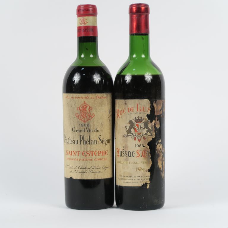 2 BOUTEILLES : 1 CHÂTEAU PHELAN SEGUR ST ESTEPHE 1962 MEP - 1 ROC DE LUSSAC 1967 BEP