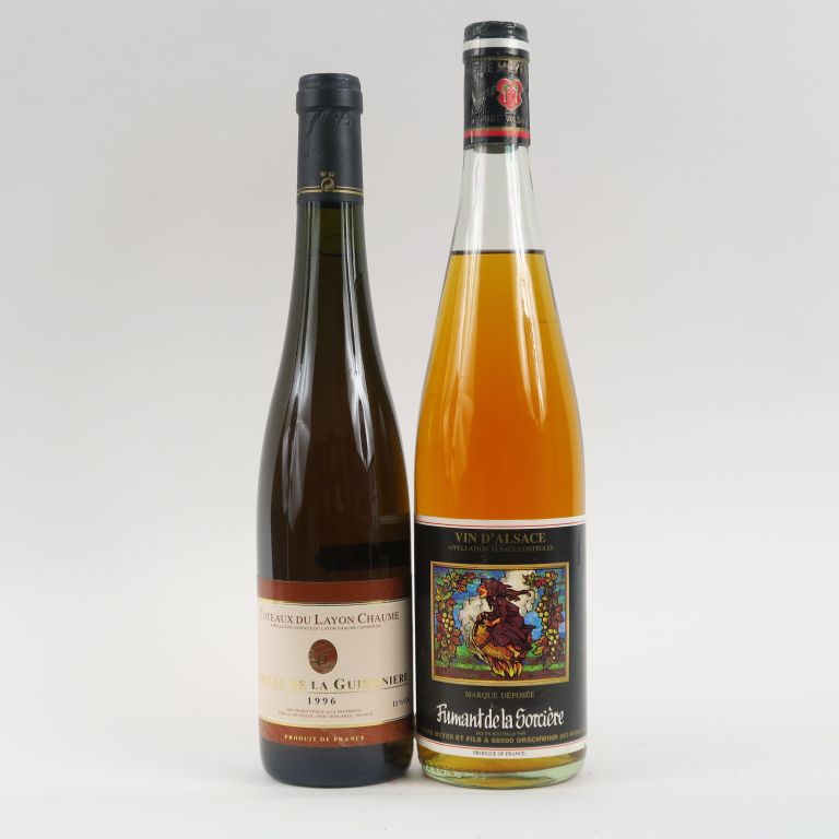 2 BOUTEILLES : 1 COTEAUX DU LAYON CHAUME CHÂTEAU DE LA GUIMONIÈRE 1996 - 1 ALSACE FUMANT DE LA SORCIÈRE
