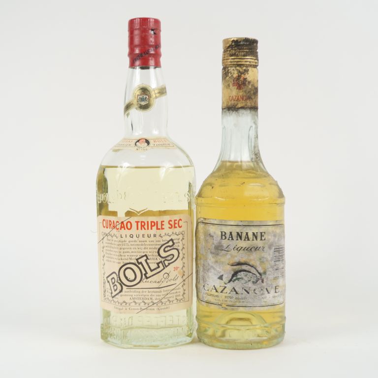 2 BOUTEILLES : 1 CURACAO TRIPLE SEC BOLS - 1 LIQUEUR BANANE CAZANOVE