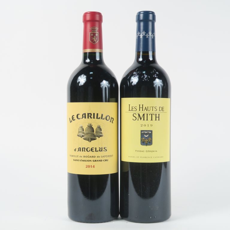 2 BOUTEILLES : 1 LE CARILLON D'ANGELUS GC ST EMILION 2014 - LES HAUTS DE SMITH GRAVES 2019