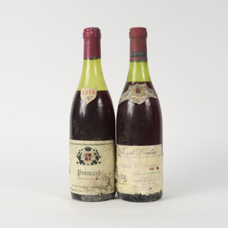 2 BOUTEILLES : 1 VOLNAY SANTENOTS J. DROUHIN 1972 4 CM/EA - 1 POMMARD HENRI NIÉ 1974 6 CM/BS