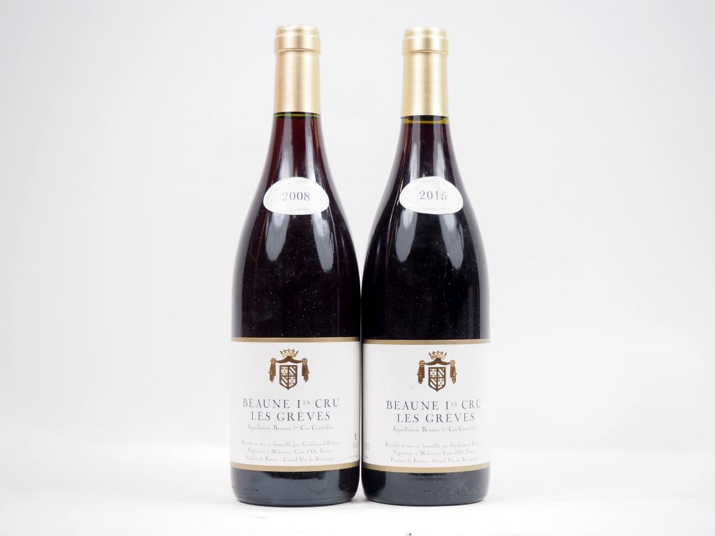 2 BOUTEILLES BEAUNE 1er CRU "LES GRÈVES" GUILLEMARD POTHIER : 1 DE 2008 / 1 DE 2015