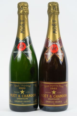 2 BOUTEILLES CHAMPAGNE MOËT CHANDON BRUT IMPERIAL 1982 : 1 BLANC - 1 ROSE - COFFRET