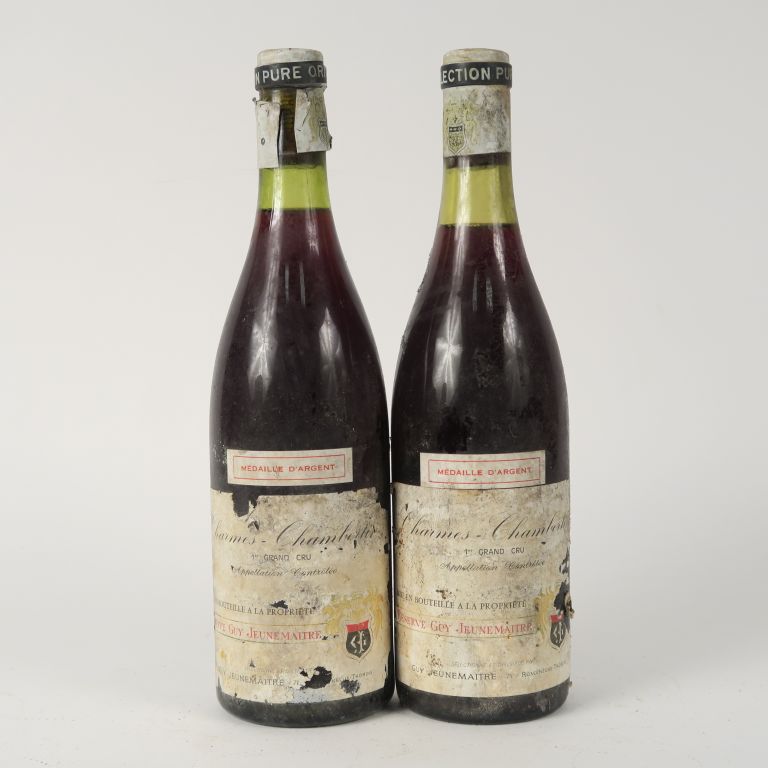 2 BOUTEILLES CHARMES CHAMBERTIN GC GUY JEUNEMAITRE - 1 à 2 CM/1 à 2,5 CM/NM/EA/1 CAPS DÉCOUPÉE