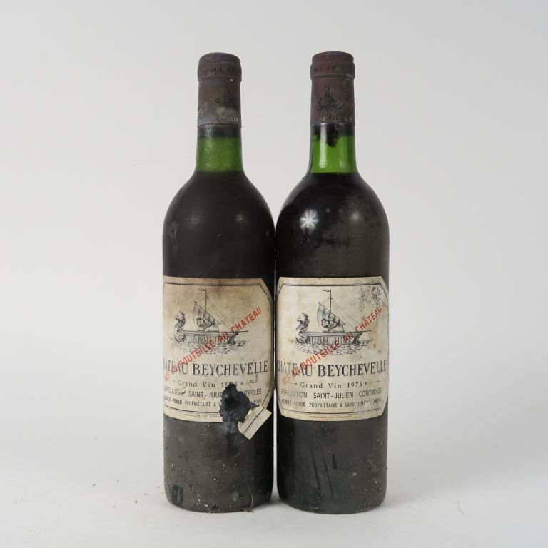 Lot de 2 BOUTEILLES CHÂTEAU BEYCHEVELLE GCC JULIEN - 1975 - BG/BS/1 ELA au prix de 60 à 70 € en vente aux enchères par l'hôtel des ventes Primardeco