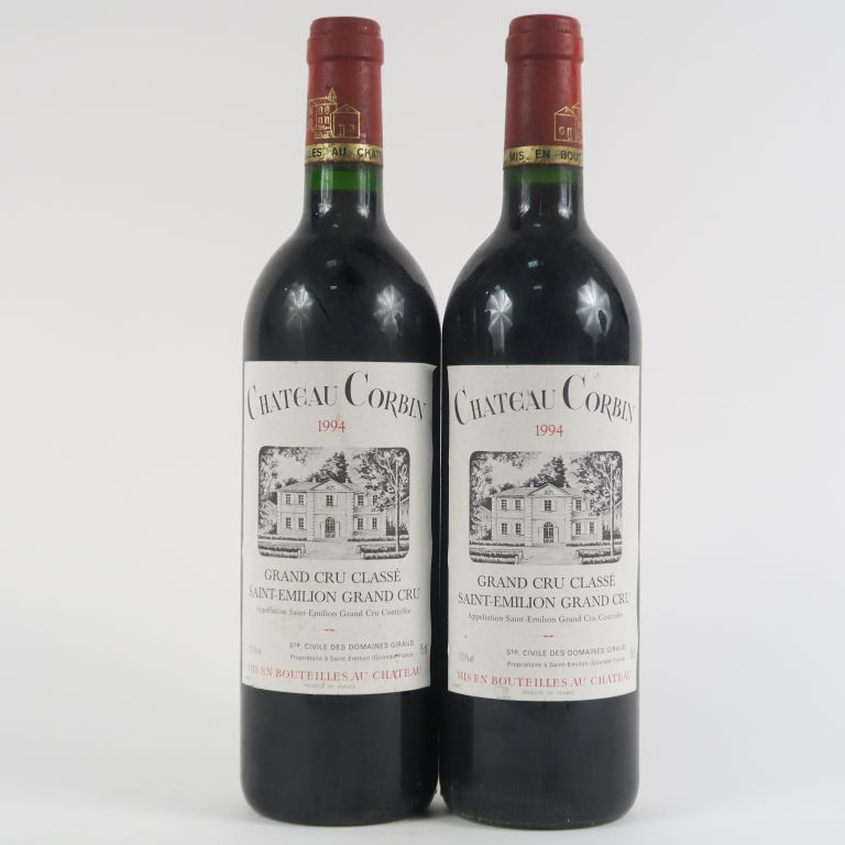 Lot de 2 BOUTEILLES CHÂTEAU CORBIN GCC ST ÉMILION - 1994 au prix de 20 à 30 € en vente aux enchères par l'hôtel des ventes Primardeco