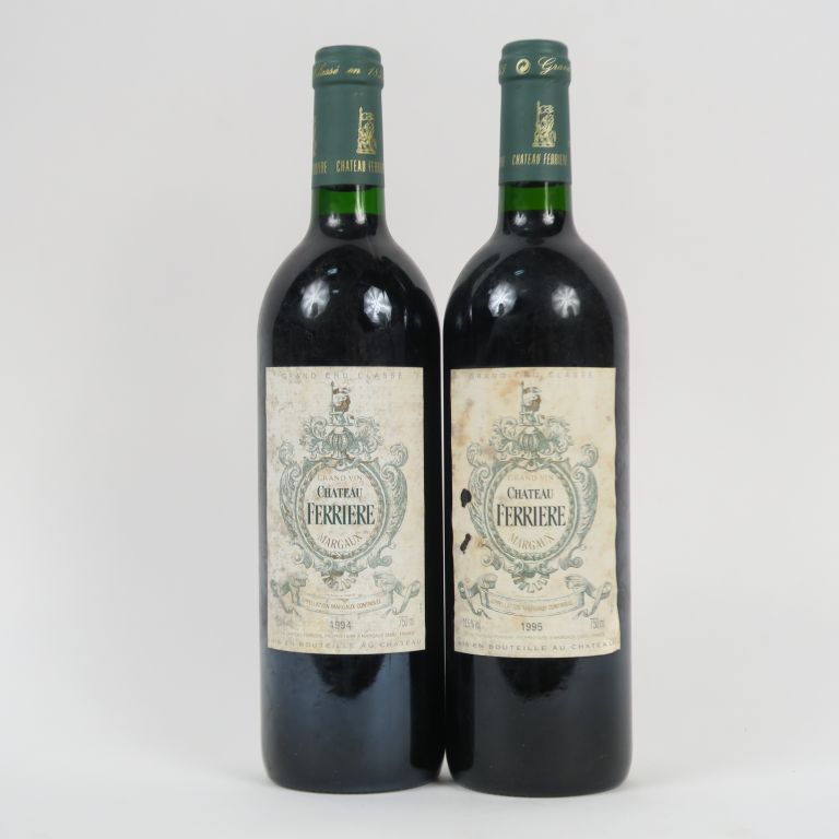 Lot de 2 BOUTEILLES CHÂTEAU FERRIERE GCC MARGAUX : 1 de 1994/1 de 1995/ELA au prix de 30 à 40 € en vente aux enchères par l'hôtel des ventes Primardeco