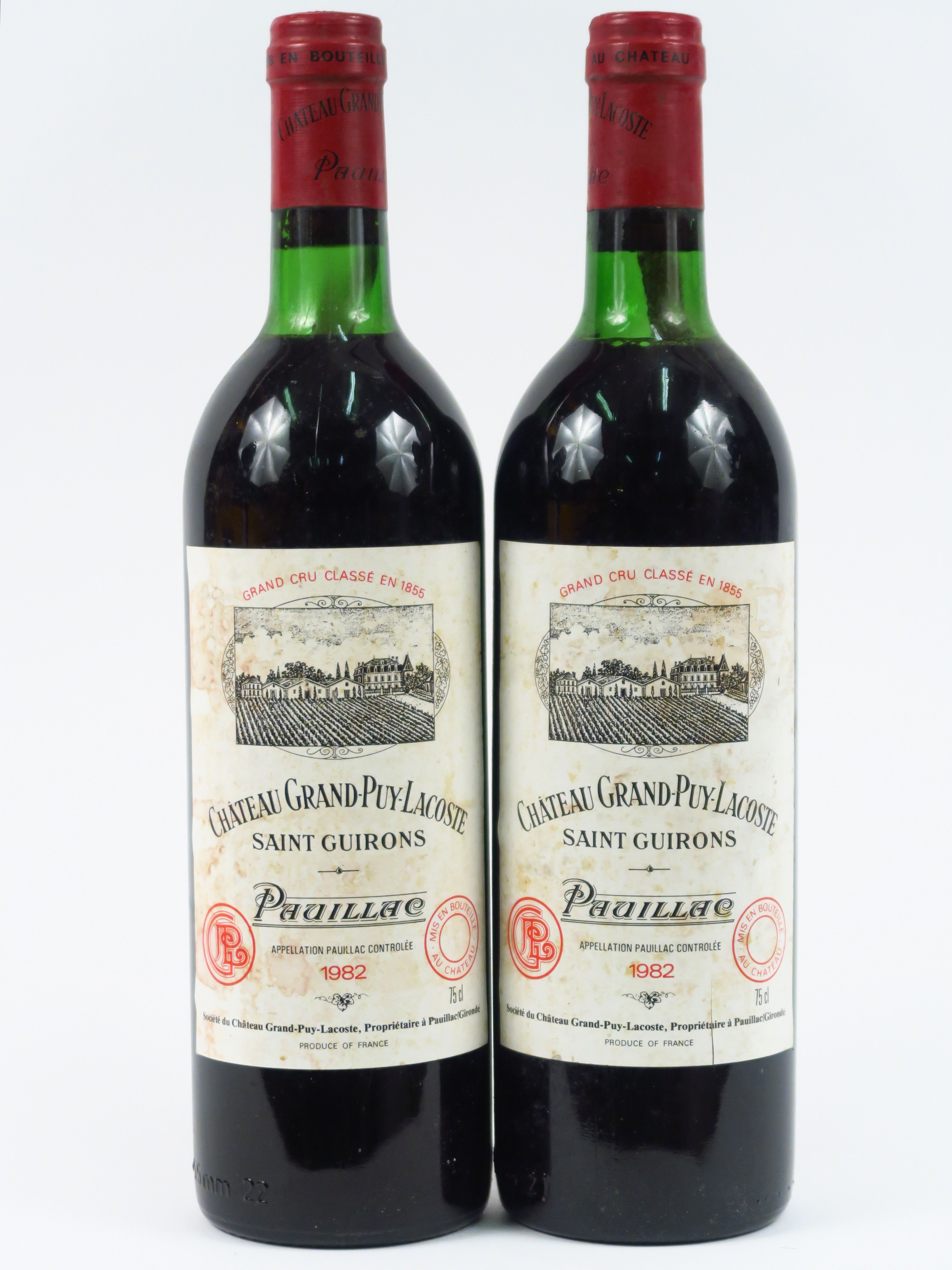 Lot de 2 BOUTEILLES CHÂTEAU GRAND PUY LACOSTE GCC PAUILLAC - 1982 - LB/ETLT au prix de 260 à 280 € en vente aux enchères par l'hôtel des ventes Primardeco