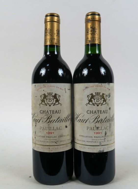 Lot de 2 BOUTEILLES CHÂTEAU HAUT BATAILLEY PAUILLAC - 1991 - ELS/ETLA au prix de 50 à 60 € en vente aux enchères par l'hôtel des ventes Primardeco