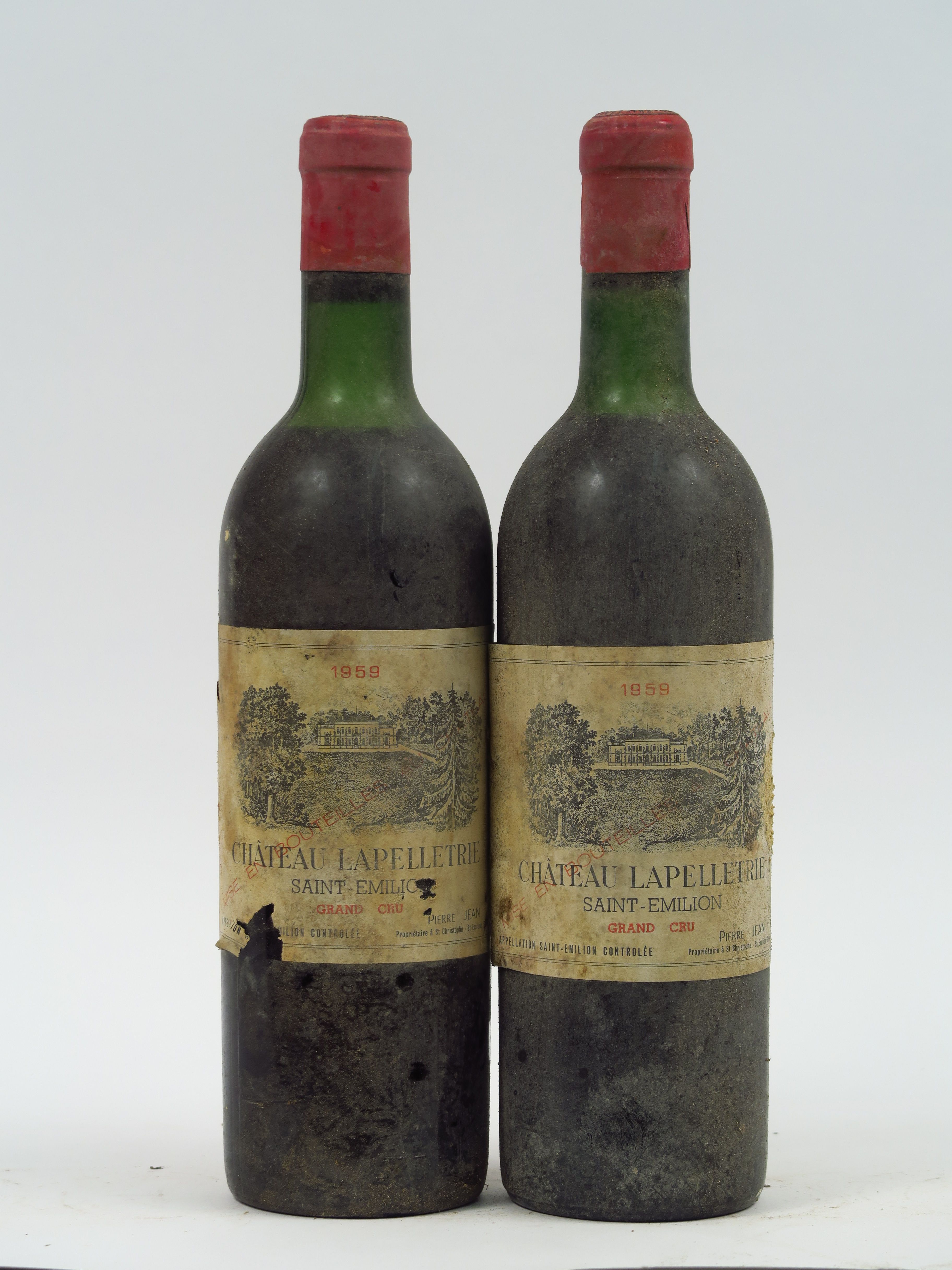 2 BOUTEILLES CHÂTEAU LAPELLETRIE GC ST EMILION - 1959 - 1 LB-HEP/1 HEP/1 ELA/BS
