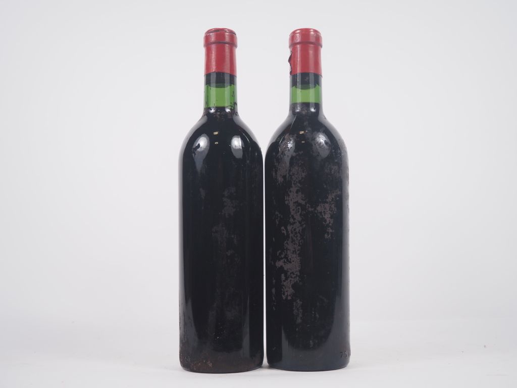 2 BOUTEILLES CHÂTEAU L'ÉVANGILE POMEROL - 1957 - BG/BOUCHONS ÉTAMPÉS/CAPSULES NEUTRES