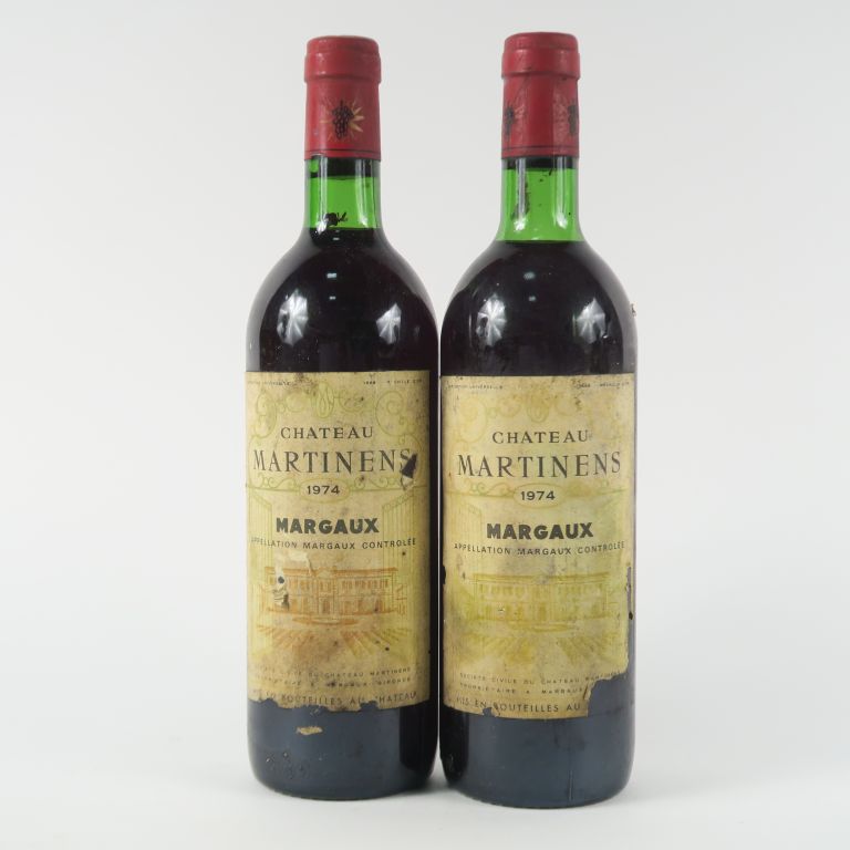 Lot de 2 BOUTEILLES CHÂTEAU MARTINENS MARGAUX - 1974 - BG/EA au prix de 20 à 30 € en vente aux enchères par l'hôtel des ventes Primardeco