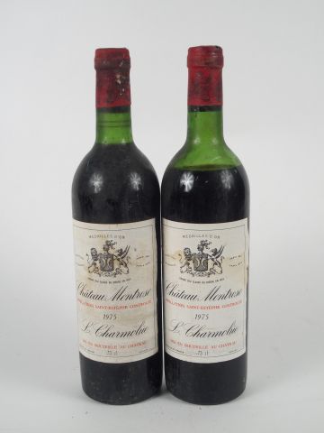 Lot de 2 BOUTEILLES CHATEAU MONTROSE GCC ST ESTEPHE - 1975 - 1 LB / 1 MEP / E au prix de 58 à 70 € en vente aux enchères par l'hôtel des ventes Primardeco