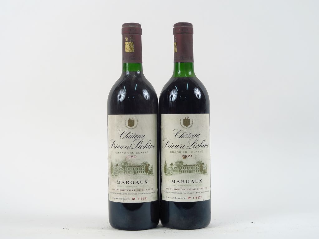 Lot de 2 BOUTEILLES CHÂTEAU PRIEURE LICHINE GCC MARGAUX - 1989 - 1 BG/1 HEP au prix de 45 à 55 € en vente aux enchères par l'hôtel des ventes Primardeco