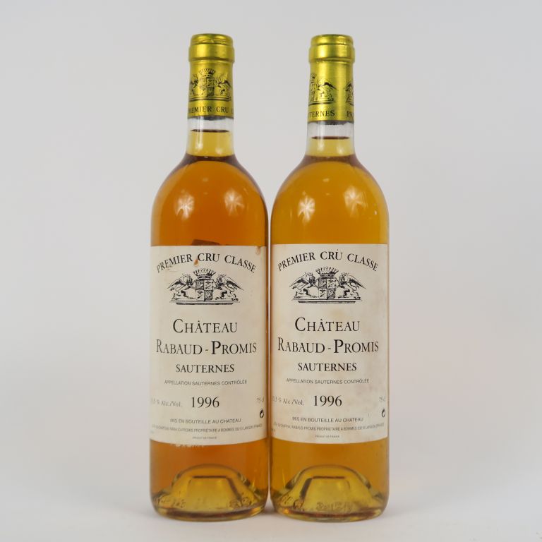 Lot de 2 BOUTEILLES CHÂTEAU RABAUD PROMIS 1er CC SAUTERNES -1996 - 1 ETLA au prix de 20 à 30 € en vente aux enchères par l'hôtel des ventes Primardeco