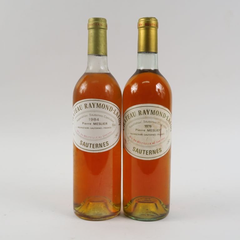 Lot de 2 BOUTEILLES CHÂTEAU RAYMOND LAFON SAUTERNES - 1 de 1976 BG/1 de 1984 au prix de 80 à 90 € en vente aux enchères par l'hôtel des ventes Primardeco