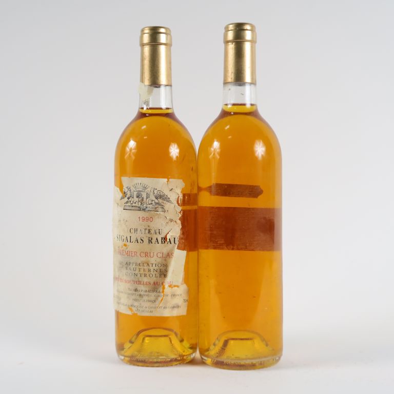 Lot de 2 BOUTEILLES CHÂTEAU SIGALAS RABAUD 1er CC SAUTERNES - 1990 - BG/EA/1 au prix de 30 à 40 € en vente aux enchères par l'hôtel des ventes Primardeco