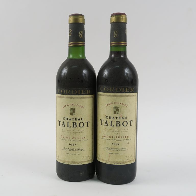 Lot de 2 BOUTEILLES CHÂTEAU TALBOT GCC ST JULIEN - 1982 - 1 LB au prix de 300 à 320 € en vente aux enchères par l'hôtel des ventes Primardeco