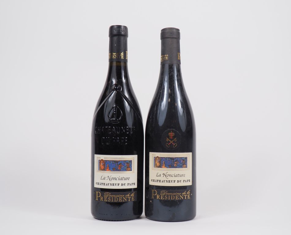 2 BOUTEILLES CHÂTEAUNEUF DU PAPE "LA NONCIATURE" DOMAINE DE LA PRÉSIDENTE : 1 de 2010/1 de 2011
