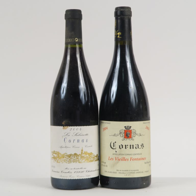 2 BOUTEILLES CORNAS 2004 : 1 'LES VIEILLES FONTAINES' ALAIN VOGE - 1 'LA SABAROTTE' DOMAINE COURBIS