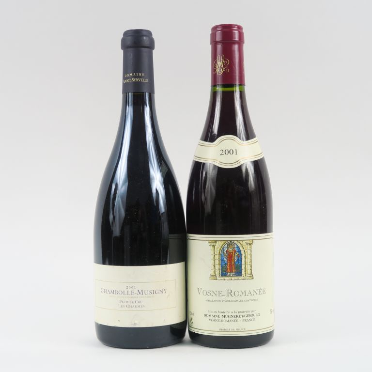 2 BOUTEILLES DE 2001 : 1 VOSNE ROMANÉE MUGNERET GIBOURG - 1 CHAMBOLLE MUSIGNY 1er CRU 'LES CHARMES' AMIOT SERVELLE