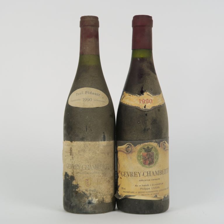 2 BOUTEILLES GEVREY CHAMBERTIN 1990 : 1 PHILIPPE LIVERA BS - 1 PAUL PIDAULT BS