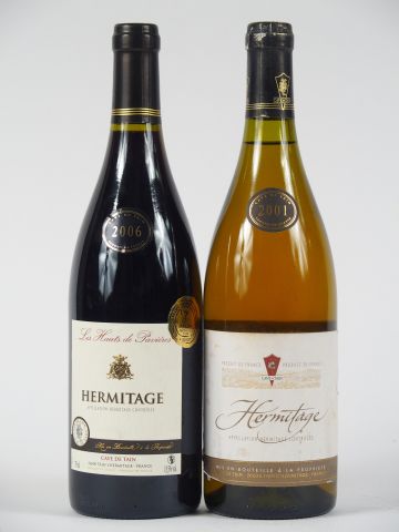 2 BOUTEILLES HERMITAGE CAVE DE TAIN : 1 ROUGE 'LES HAUTS DE PAVIERES' 2006 - 1 BLANC 2001 ETLA