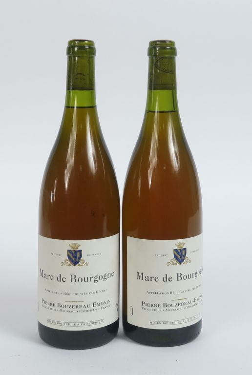 2 BOUTEILLES MARC DE BOURGOGNE P. BOUZEREAU EMONIN 42 ° - SANS CAPSULES
