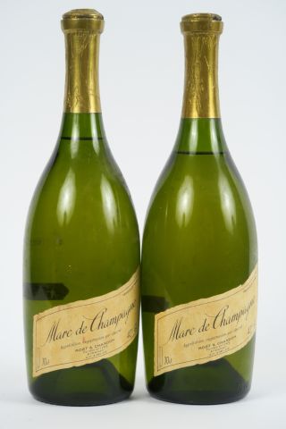 Lot de 2 BOUTEILLES MARC DE CHAMPAGNE MOËT CHANDON 42% au prix de 35 à 45 € en vente aux enchères par l'hôtel des ventes Primardeco