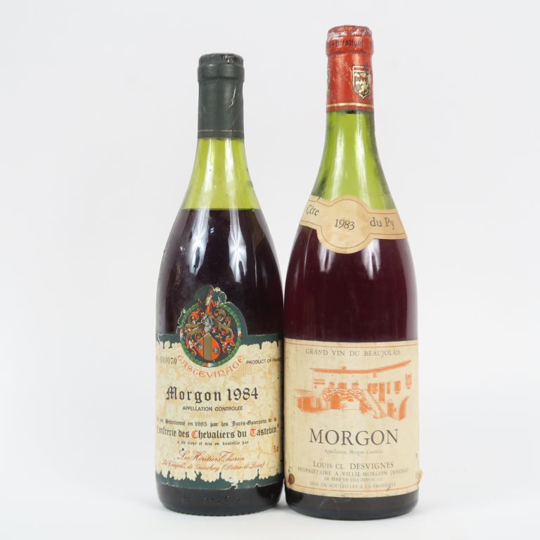 2 BOUTEILLES MORGON : 1 'CÔTE DU PY' LOUIS DESVIGNES 1983 6,5 CM - 1 TASTEVINAGE 1984 5 CM
