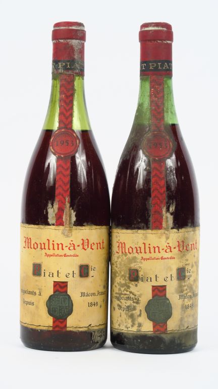 2 BOUTEILLES MOULIN A VENT PIAT CIE - 1953 - 1 à 4,5 cm/1 à 5 cm/ET
