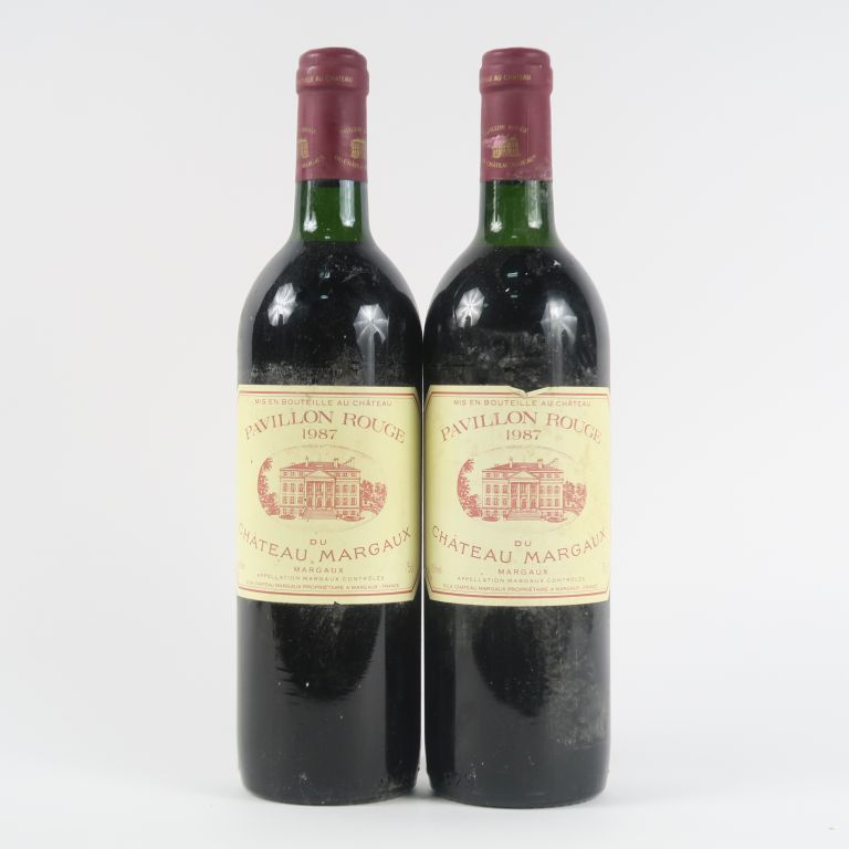 Lot de 2 BOUTEILLES PAVILLON ROUGE DU CHÂTEAU MARGAUX - 1987 - LB au prix de 100 à 120 € en vente aux enchères par l'hôtel des ventes Primardeco