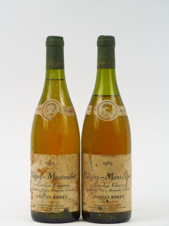 2 BOUTEILLES PULIGNY MONTRACHET 1er CRU 'LES FOLATIERES' A. RODET - 1989 - EA/1 CAPS A