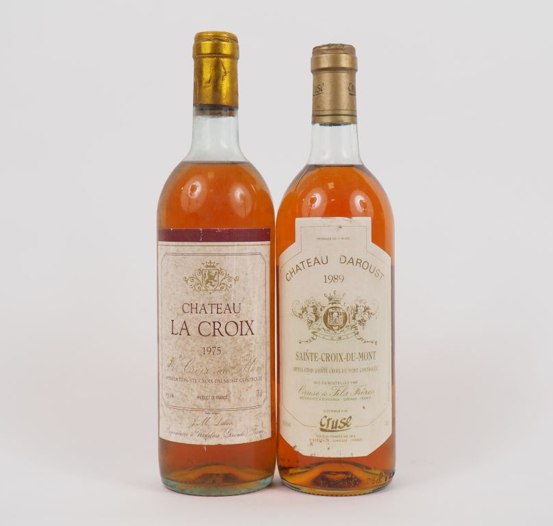 2 BOUTEILLES SAINTE CROIX DU MONT : 1 CHÂTEAU LA CROIX J. M. DULAC 1989/1 CHÂTEAU DAROUST CRUSE FILS FRÈRES 1989