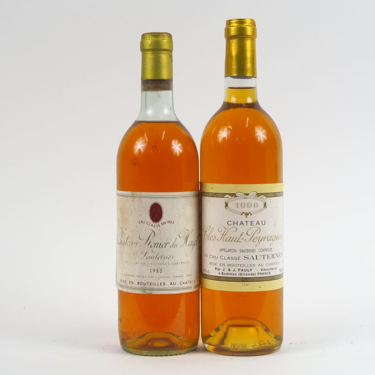 2 BOUTEILLES SAUTERNES : 1 CHÂTEAU ROMER DU HAYOT SAUTERNES 1982 HEP/CAPS AB - 1 CHÂTEAU CLOS HAUT PEYRAGUEY 1996