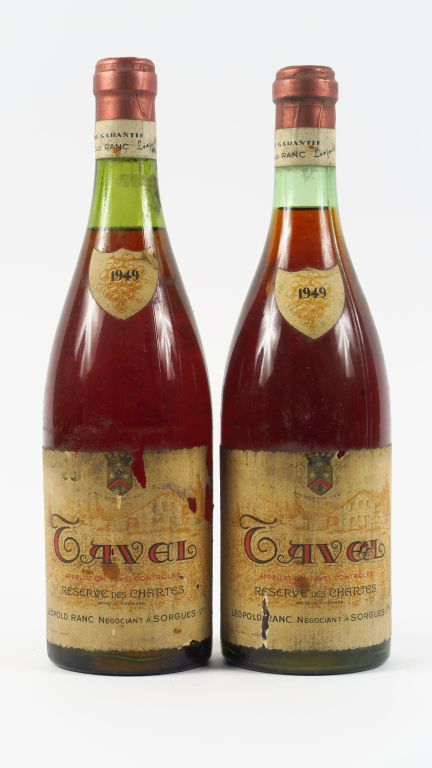 Lot de 2 BOUTEILLES TAVEL ROSE - 1949 - 1 à 2 cm - 1 à 3,5 cm - EF au prix de 10 à 20 € en vente aux enchères par l'hôtel des ventes Primardeco