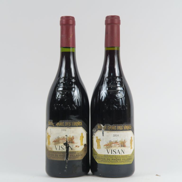 Lot de 2 BOUTEILLES VISAN 'NOTRE DAME DES VIGNES' CÔTES DU RHÔNE - 2004 au prix de 5 à 10 € en vente aux enchères par l'hôtel des ventes Primardeco