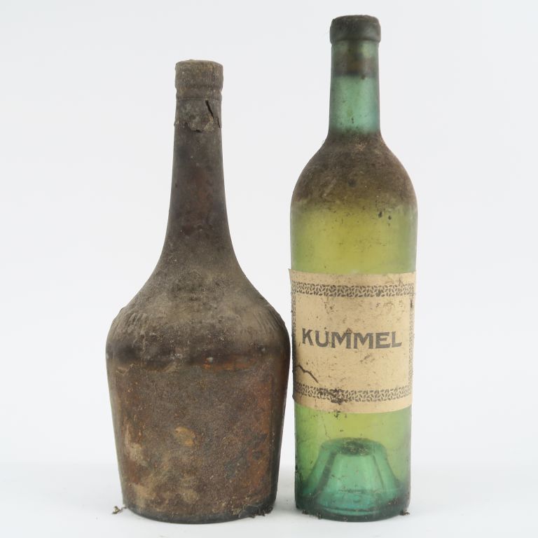 2 VIELLES BOUTEILLES : 1 KUMMEL - 1 LA JACQUELINE A. VIALADE CARCASSONNE BS/ETA