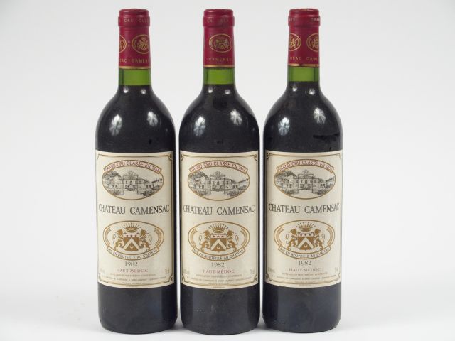 Lot de 3 BOUTEILLE CHÂTEAU CAMENSAC GCC HAUT MEDOC - 1982 au prix de 90 à 100 € en vente aux enchères par l'hôtel des ventes Primardeco