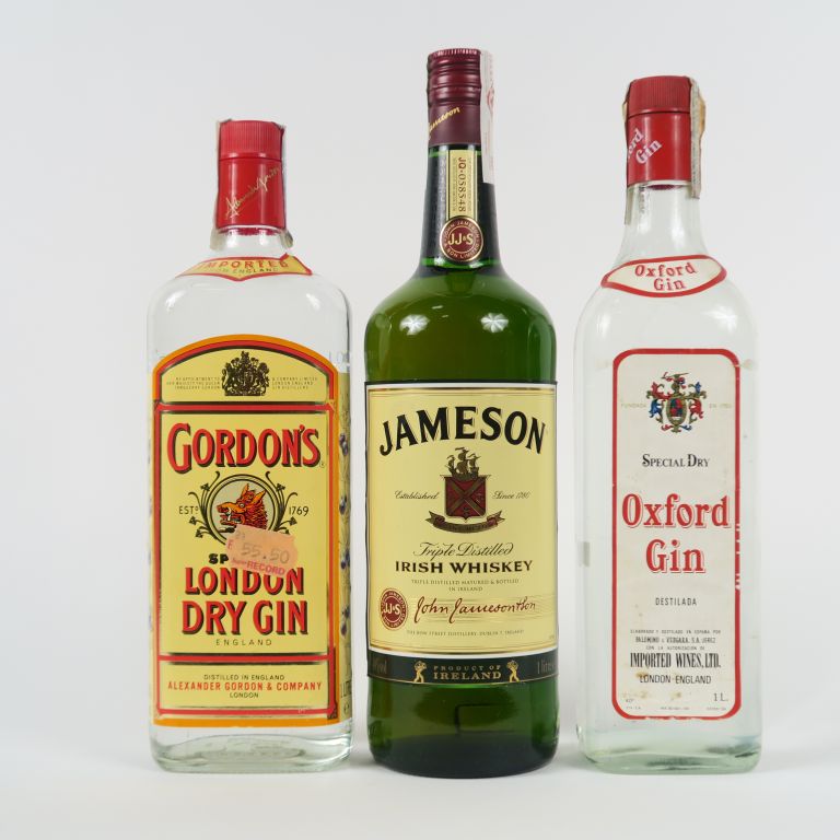 3 BOUTEILLES (1 L) : 1 WHISKY JAMESON - 1 GIN GORDON'S - 1 GIN OXFORD