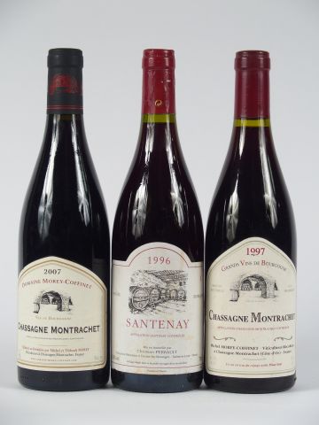 3 BOUTEILLES : 2 CHASSAGNE MONTRACHET ROUGE MOREY COFFINET 1997/2007 - 1 SANTENAY C. PERRAULT 1996