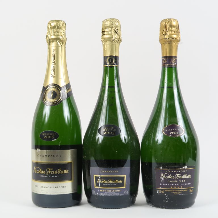 3 BOUTEILLES CHAMPAGNE NICOLAS FEUILLATTE : 1 'CUVÉE 225' 2004 - 1 'CUVÉE SPÉCIALE' 2005 - 1 BRUT BLANC DE BLANCS 2006