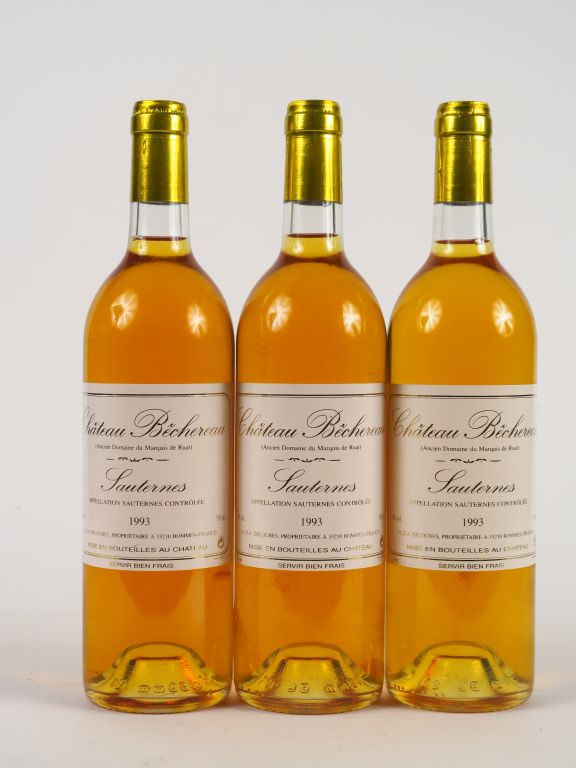 Lot de 3 BOUTEILLES CHÂTEAU BECHEREAU SAUTERNES - 1993 au prix de 15 à 20 € en vente aux enchères par l'hôtel des ventes Primardeco