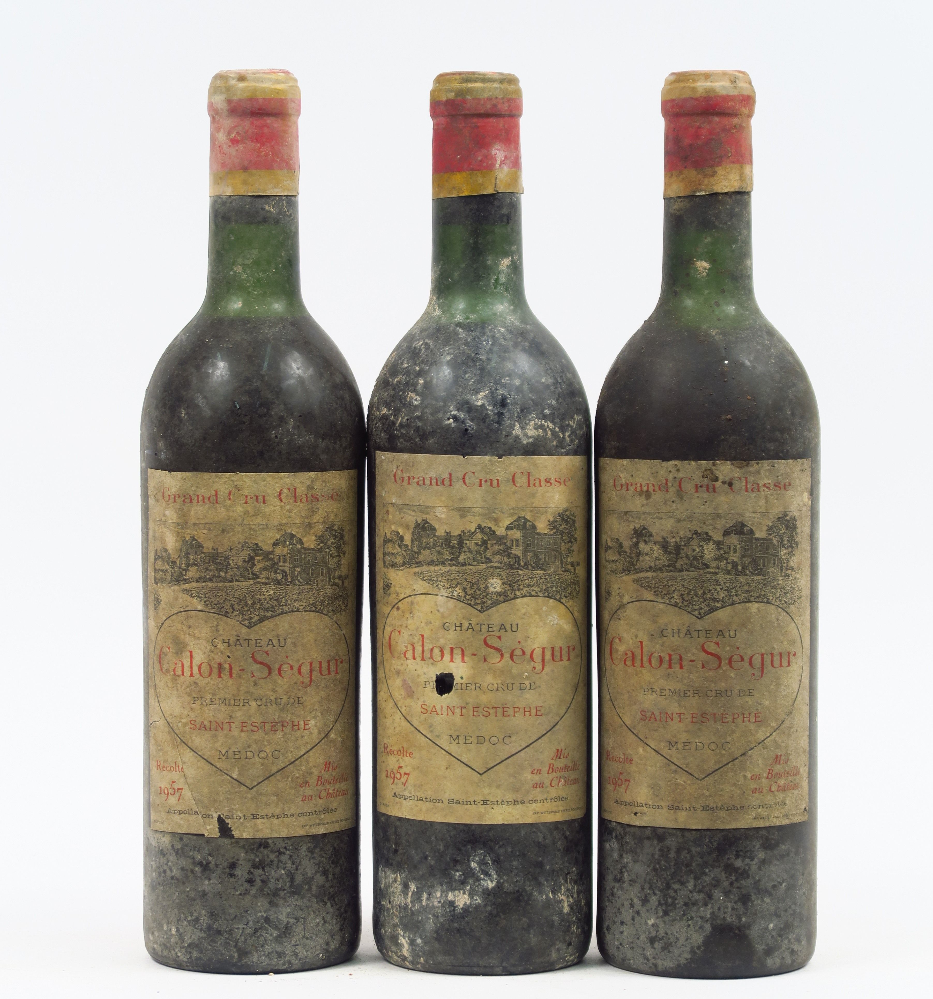3 BOUTEILLES CHÂTEAU CALON SEGUR GCC ST ESTEPHE - 1957 - 2 LB/1 LB-HEP/BS/EA/3 CAPS CORRODEES
