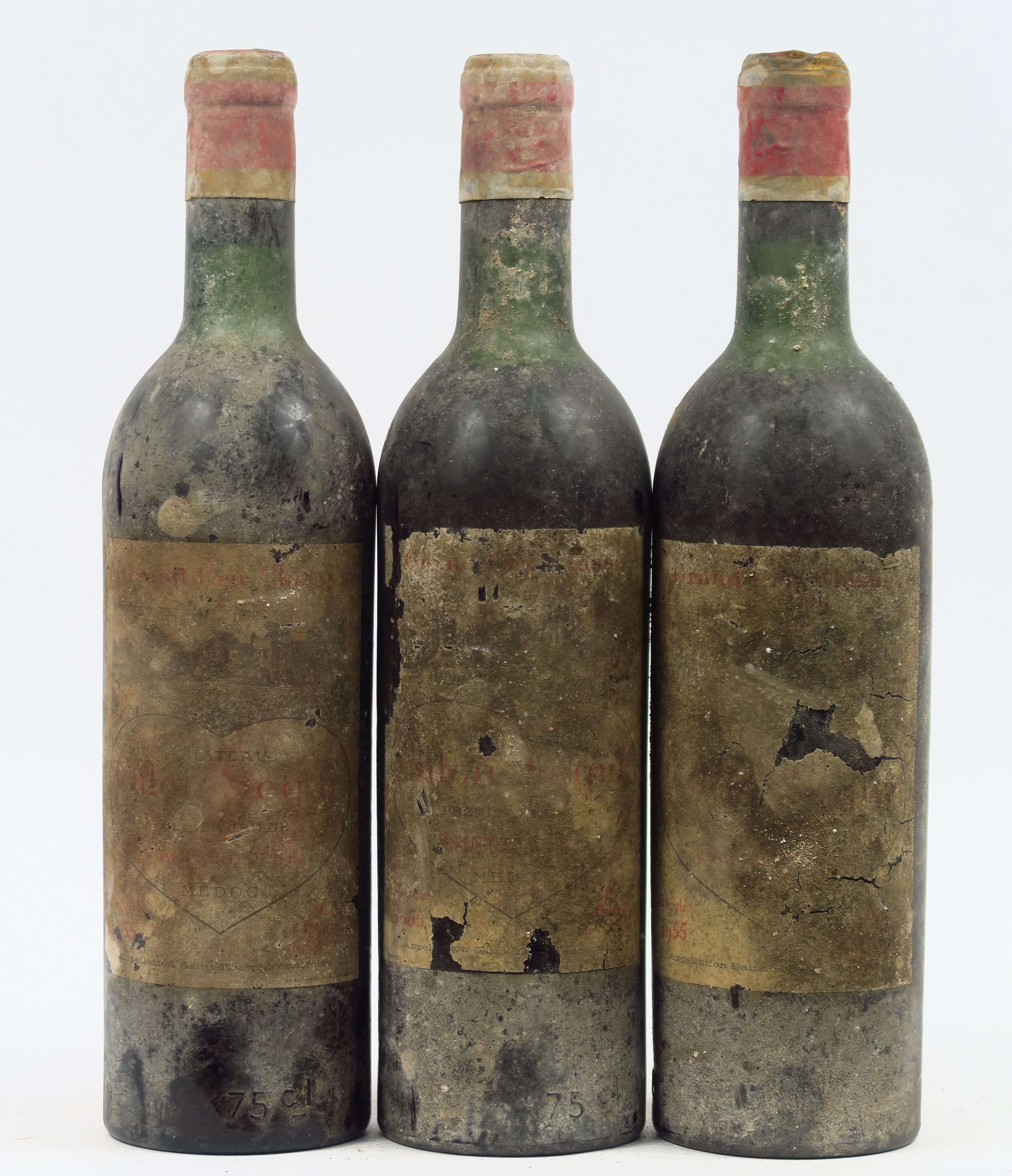 3 BOUTEILLES CHÂTEAU CALON SEGUR GCC STE ESTEPHE - 1955 - 1 LB/2 HEP/ETA/2 CAPS CORRODEE