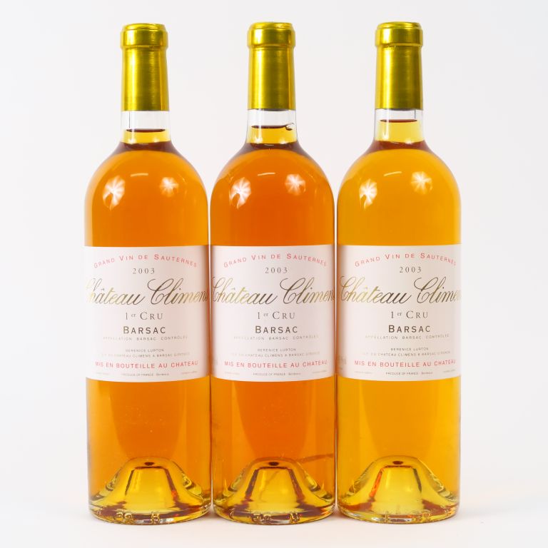 Lot de 3 BOUTEILLES CHÂTEAU CLIMENS 1er CC SAUTERNES - 2003 au prix de 130 à 150 € en vente aux enchères par l'hôtel des ventes Primardeco