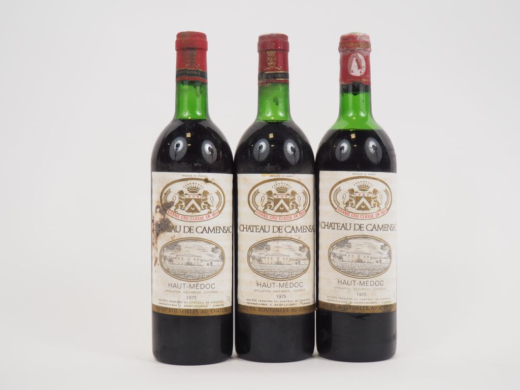 3 BOUTEILLES CHÂTEAU DE CAMENSAC GCC HAUT MÉDOC - 1975 - 2 BG/1 HEP/1 ETA