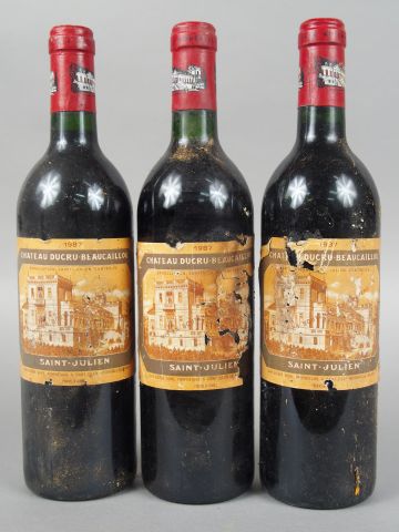 Lot de 3 BOUTEILLES - CHÂTEAU DUCRU BEAUCAILLOU GCC ST JULIEN - 1987 - LB/ES au prix de 110 à 130 € en vente aux enchères par l'hôtel des ventes Primardeco